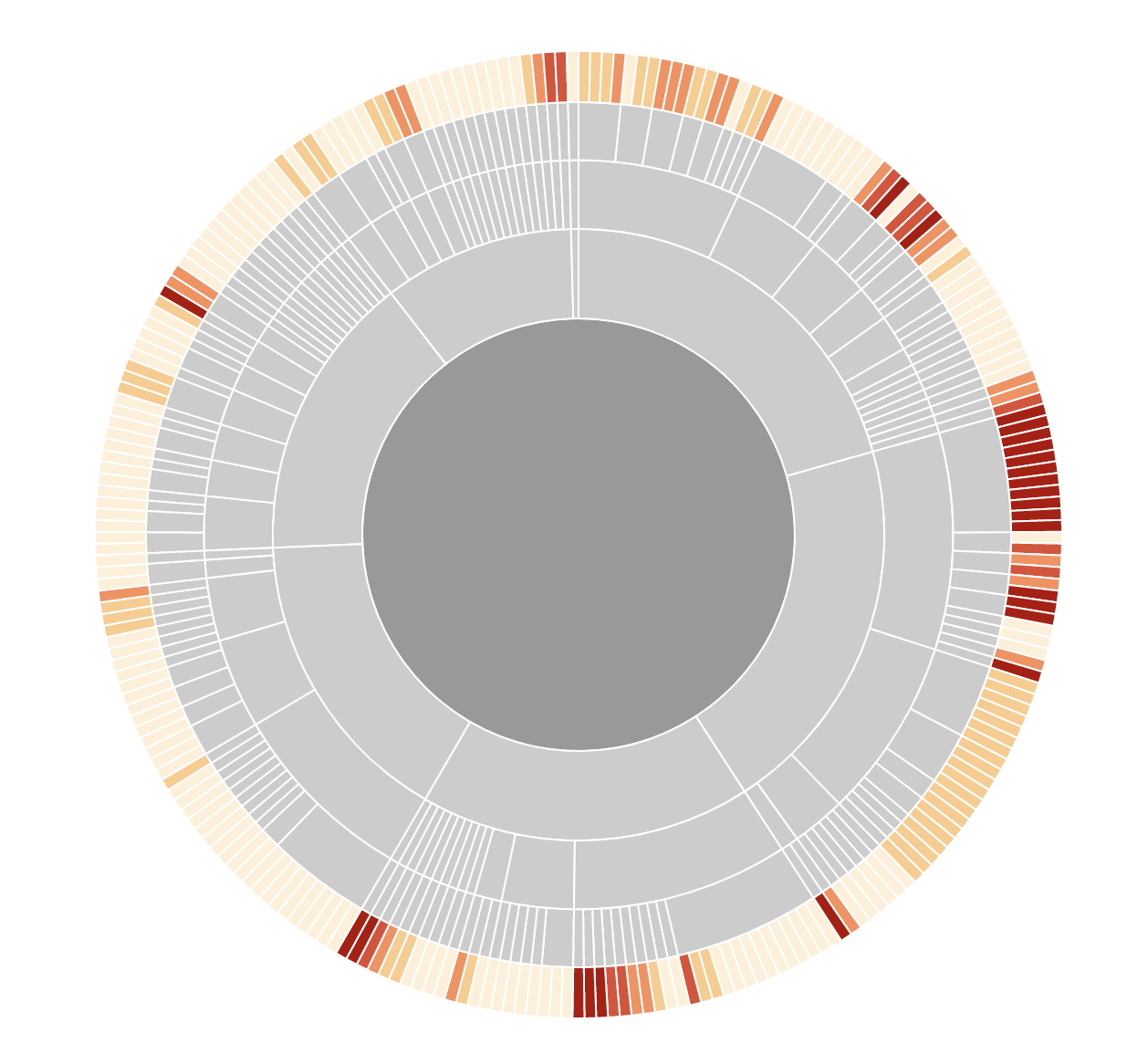 The WALS Sunburst Explorer is implemented in JavaScript using the D3 library (Bostock et al. 2011). The ordinal scale is taken from Cynthia Brewer’s colorbrewer.